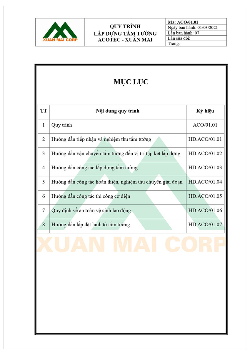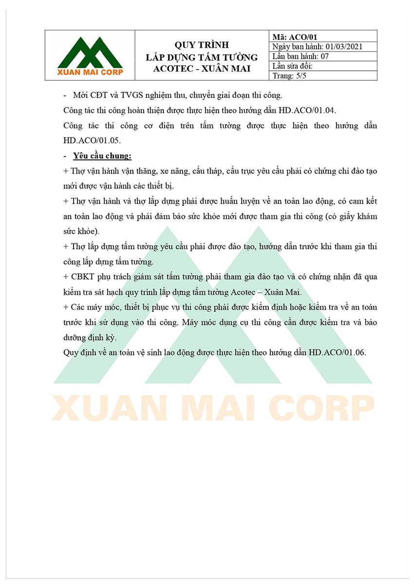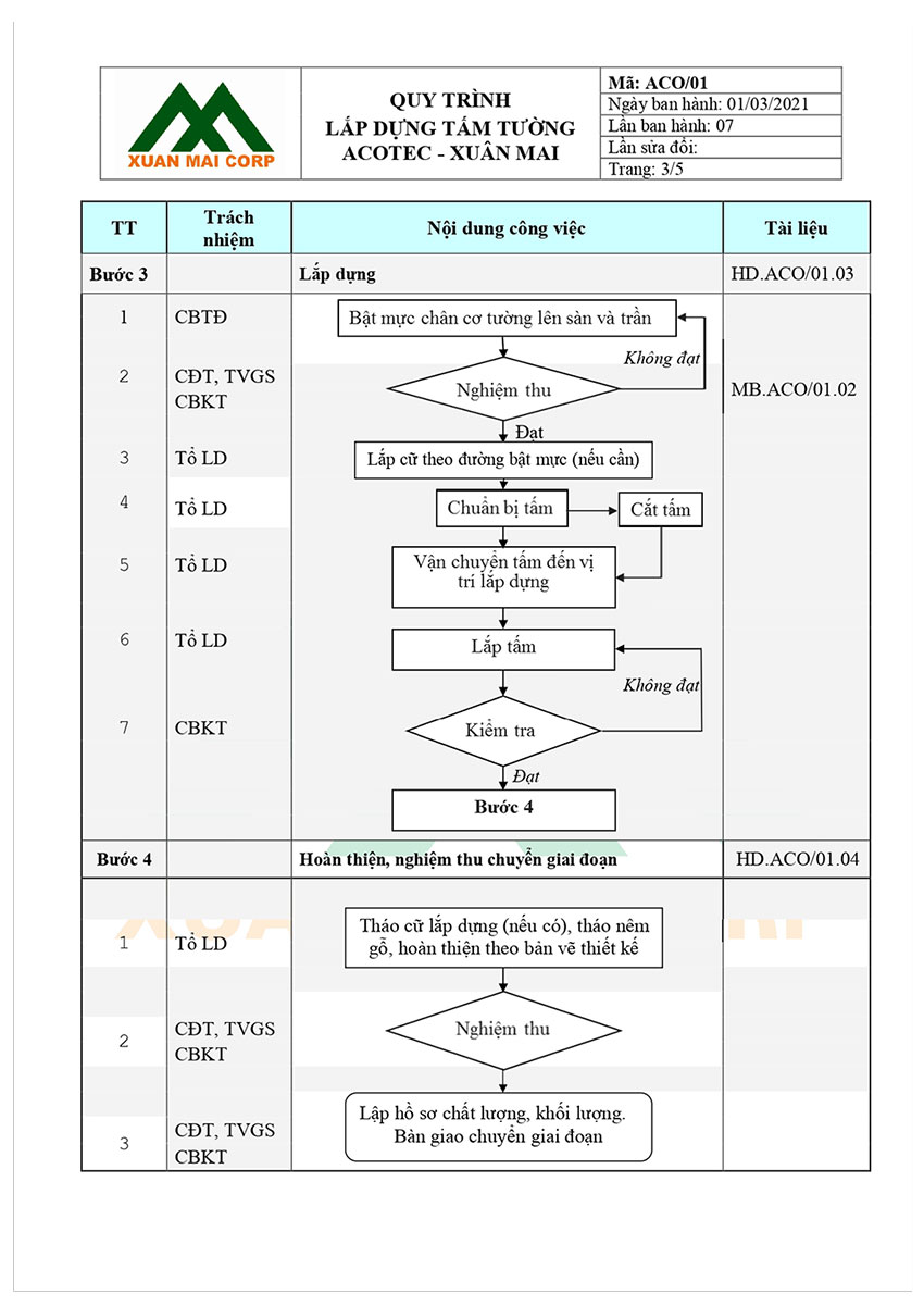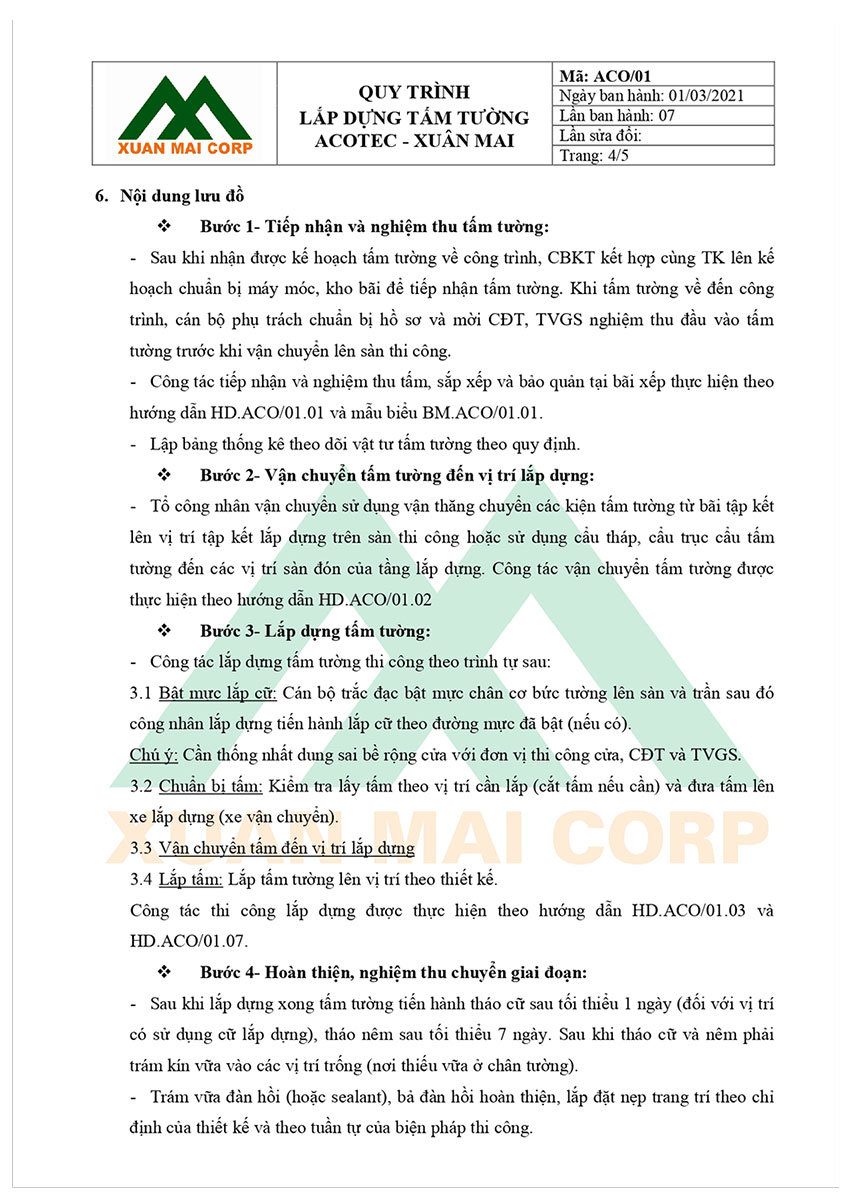 QUY TRÌNH LẮP DỰNG TẤM TƯỜNG ACOTEC – XUÂN MAI